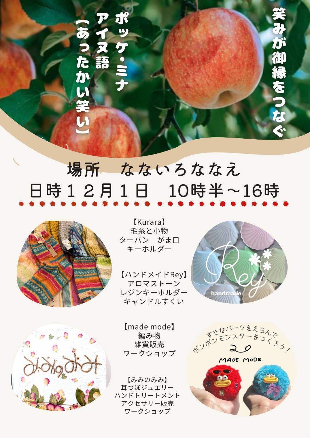 ハンドメイド作品、セレクト雑貨の販売やワークショップを開催!