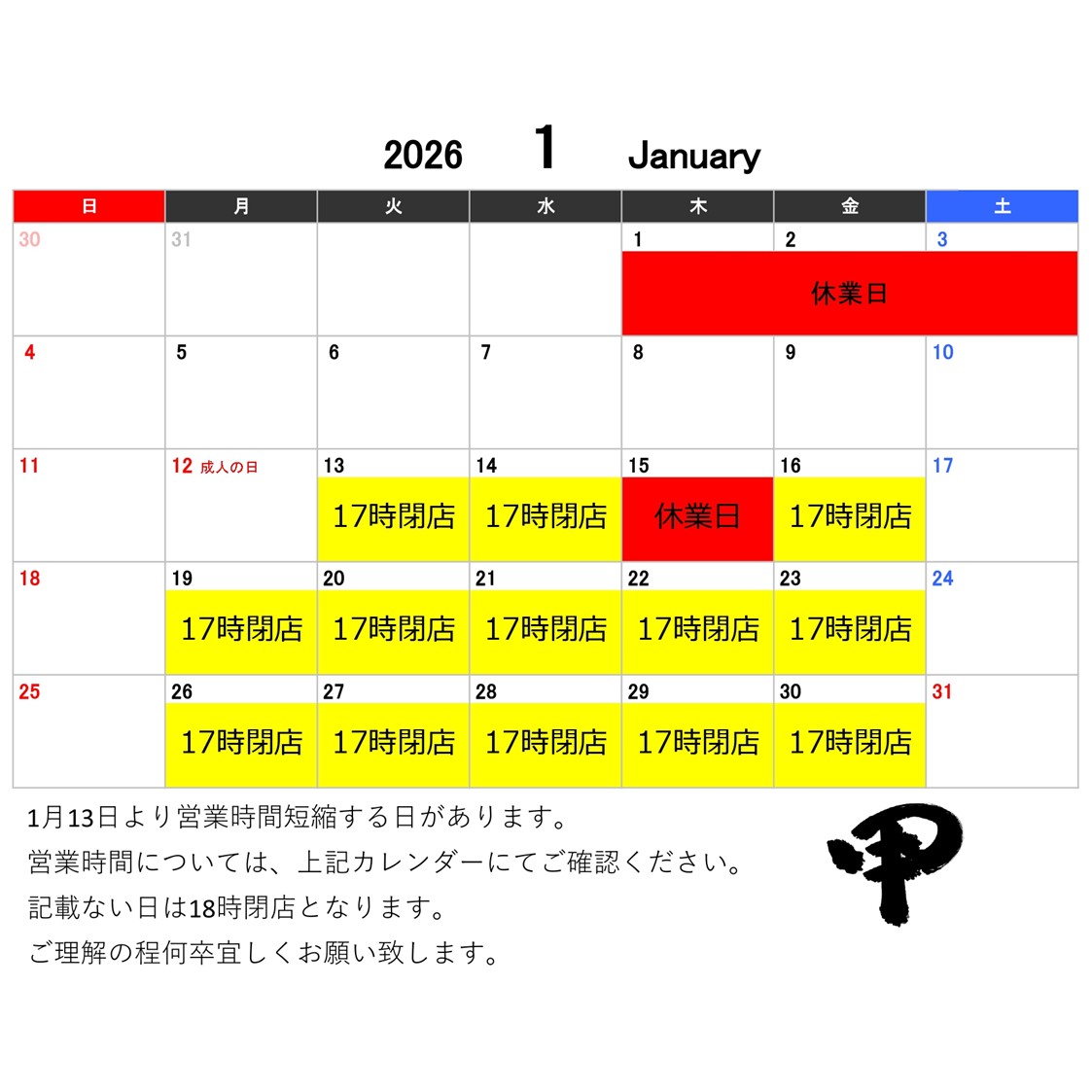 冬期間における営業時間を下記のとおり変更いたします。ご不便をおかけしますが、ご理解の程よろしくお願いいたします。