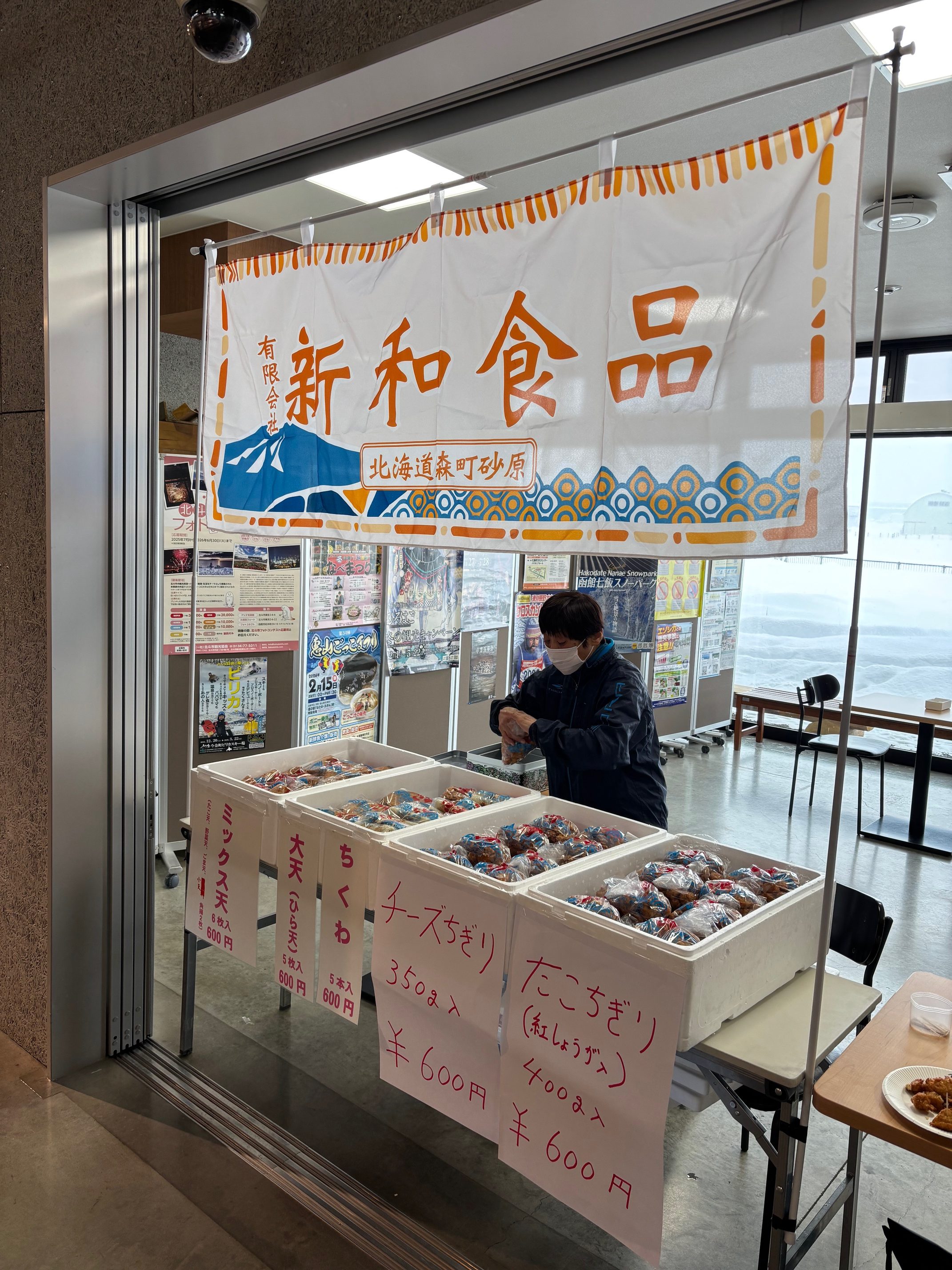 焼きちくわ 、ミックス天 、チーズちぎり、たこちぎりなどを販売