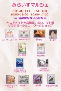 ハンドメイドのアクセサリー、雑貨などの販売、占い、マッサージなどを実施